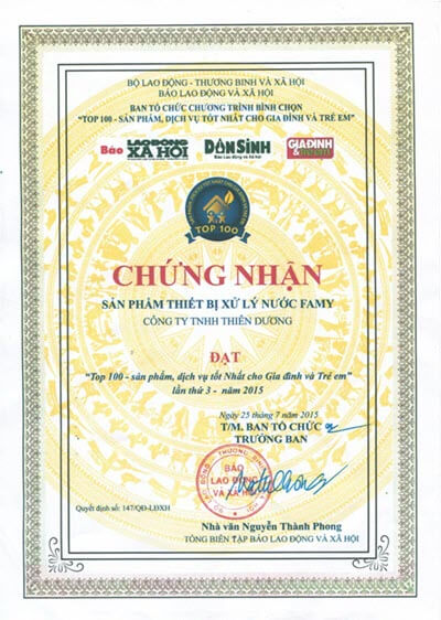 Máy lọc nước Famy được khách hàng tin dùng, được các cơ quan, tổ chức lớn lựa chọn và bình bầu cho các chứng nhận, giải thưởng lớn trong ngành xử lý nước.