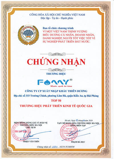 • 2020: Top 50 Thương hiệu phát triển kinh tế quốc gia